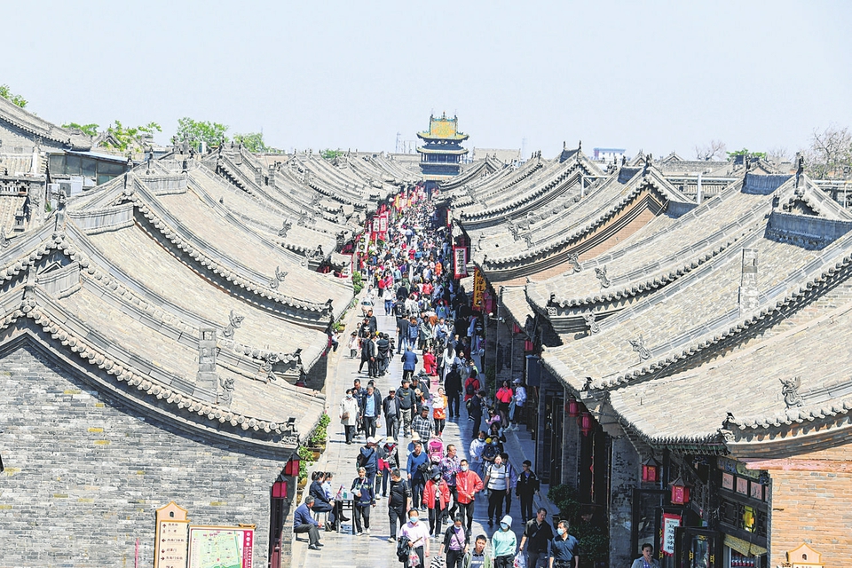 平遙古城厚重的歷史文化吸引了四方賓朋。圖為游人在平遙古城明清街游覽。梁生仁攝