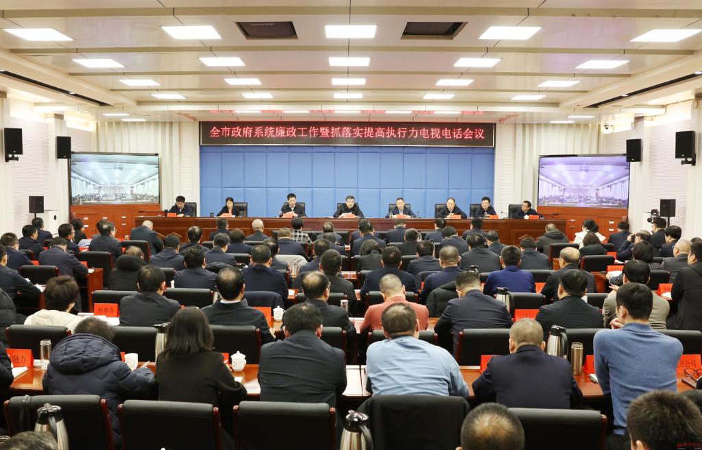 本報訊 (記者任逢春)2月22日,全市政府系統(tǒng)廉政工作暨抓落實提高執(zhí)行力會議召開,深入學(xué)習(xí)貫徹習(xí)近平總書記關(guān)于黨的自我革命的重要思想,全面貫徹黨中央國務(wù)院、省委省政府、省紀(jì)委和市委的系列會議安排,對縱深推進(jìn)政府系統(tǒng)黨風(fēng)廉政建設(shè)和反腐敗斗爭工作進(jìn)行安排部署,號召全市政府系統(tǒng)振奮精神、擔(dān)當(dāng)作為,全面提升重實干、強執(zhí)行、抓落實的實踐成效,不斷開創(chuàng)全市高質(zhì)量發(fā)展、全方位轉(zhuǎn)型和現(xiàn)代化建設(shè)新局面。市委副書記、市長李建國出席會議并講話。市委常委、常務(wù)副市長趙新年主持會議。市委常委、市紀(jì)委書記、市監(jiān)委代主任王建江,副市長史紅波、賈玲香、王建峰、李碩,市政府秘書長張艮生出席。