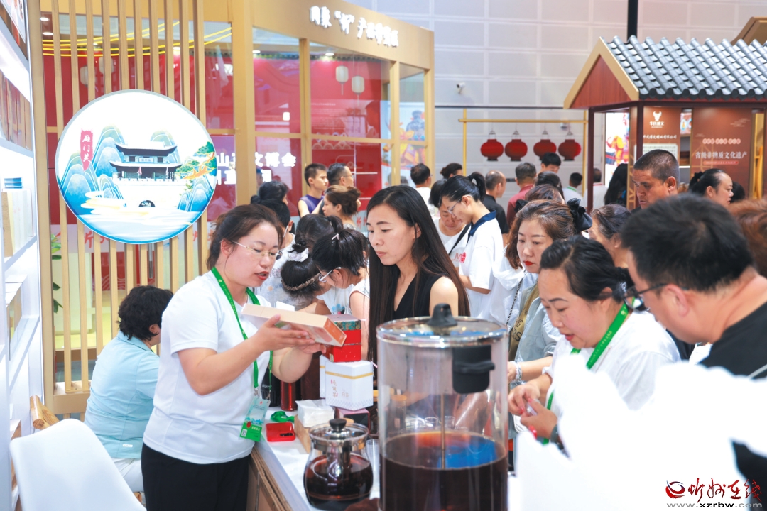觀眾在第七屆山西文博會(huì)忻州展廳購(gòu)買特優(yōu)農(nóng)產(chǎn)品。張存良攝