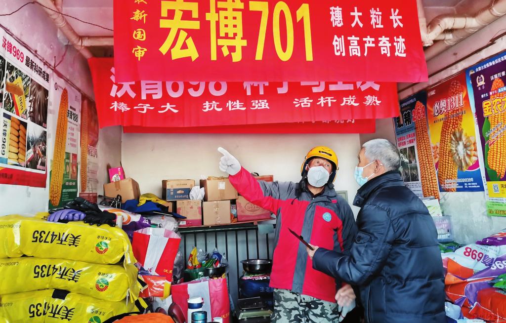 3月22日,忻府區(qū)董村農民正在忻州城區(qū)健康東街一農資店選購種子。天氣漸暖,我市各地加緊良種選育、購買農資、修渠整地等工作,為春耕做足準備。 (宮清華 攝)