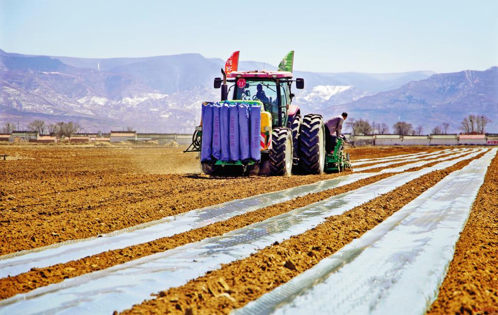 4月10日,五寨縣現(xiàn)代加工型馬鈴薯產(chǎn)業(yè)示范園的萬畝馬鈴薯輪作玉米播種工作全面啟動,預(yù)計今年輪作面積達(dá)2萬畝以上。為加快輪作進(jìn)度,園區(qū)引進(jìn)中國神農(nóng)農(nóng)業(yè)機械發(fā)展(山西)集團有限公司大型玉米綜合播種機,該播種機單次投種、投肥,鋪膜、布管面積可達(dá)100畝以上,預(yù)計全部輪作玉米播種工作將在5月初完成。圖為大型玉米綜合播種機正在播種。 (張向榮 攝)