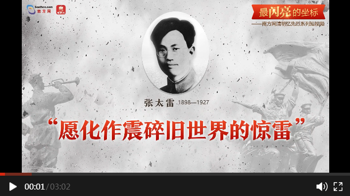 編者按:清明憶英烈,忠魂貫長(zhǎng)空。4月1日至5日,南方網(wǎng)、粵學(xué)習(xí)客戶端策劃推出“最閃亮的坐標(biāo)”系列短視頻,通過挖掘廣東革命烈士的光輝事跡,與大家一起緬懷英烈、學(xué)習(xí)英烈。今天推出第二篇《張?zhí)祝涸富髡鹚榕f世界的驚雷》。