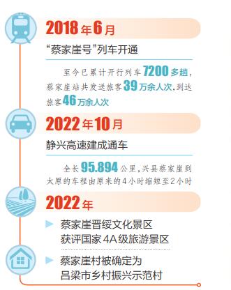 和王先生一樣,近年來(lái),很多游客選擇乘坐火車到蔡家崖旅行,而蔡家崖的村民們很多會(huì)乘坐火車到外地上學(xué)和工作。據(jù)蔡家崖火車站值班站長(zhǎng)蔣偉介紹,自2018年太原至蔡家崖的列車開(kāi)通以來(lái),已累計(jì)開(kāi)行7200多趟,該站發(fā)送旅客39萬(wàn)余人次,到達(dá)旅客46萬(wàn)余人次。