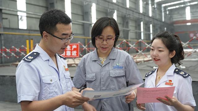 平定縣稅務局工作人員入企宣傳。記者楊惠生攝