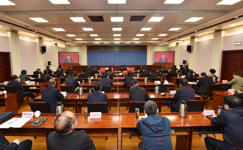 市領(lǐng)導(dǎo)集中收聽收看大會實(shí)況直播。馮曉磊 攝