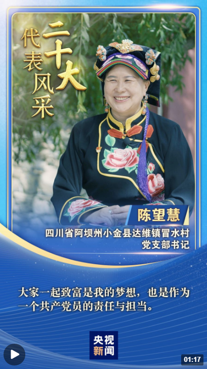 “二十大代表風(fēng)采”一起來(lái)認(rèn)識(shí)四川省阿壩州小金縣達(dá)維鎮(zhèn)冒水村黨支部書(shū)記陳望慧。