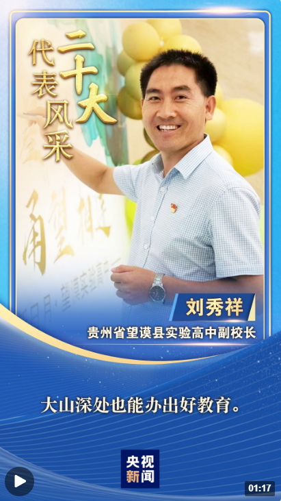 “二十大代表風(fēng)采”一起來(lái)認(rèn)識(shí)貴州省黔西南州望謨縣實(shí)驗(yàn)高中副校長(zhǎng)劉秀祥。