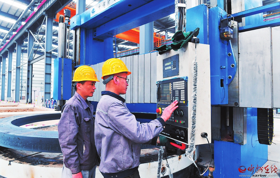 在山西寶航重工有限公司生產(chǎn)車間內(nèi),工人正在操作加工設(shè)備。 暢 雪 郗宏光攝