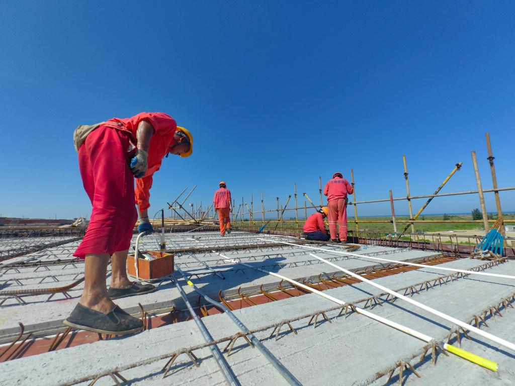 備戰(zhàn)全島封關(guān),相關(guān)硬件設(shè)施建設(shè)不能落后。在洋浦國際集裝箱碼頭附近,洋浦港封關(guān)運作項目建設(shè)現(xiàn)場一片繁忙,百余名工人頂著烈日或扎鋼筋,或拌水泥,或裝樓板,個個汗流浹背。“9月要完工,助力海南自貿(mào)港到今年底具備封關(guān)運作硬件條件。”項目負責人李東冬說。