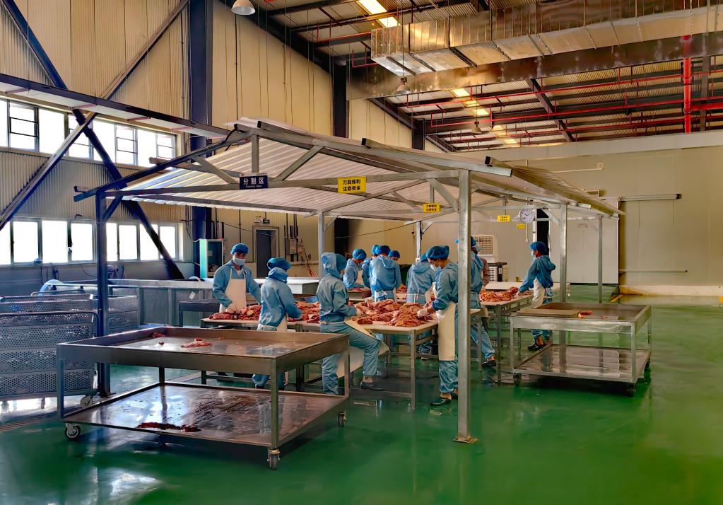 在海南紅焱食品有限公司廠房內(nèi),工人們正在學(xué)習牛肉分解。新華社記者吳茂輝 攝
