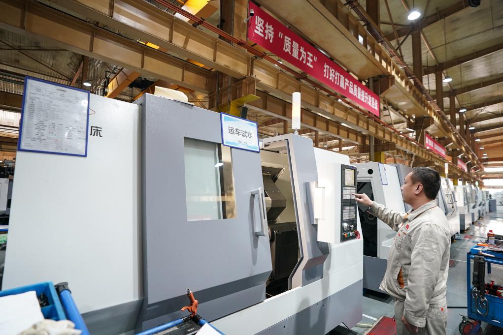 通用技術集團沈陽機床的工人在車間工作。新華社記者潘昱龍 攝