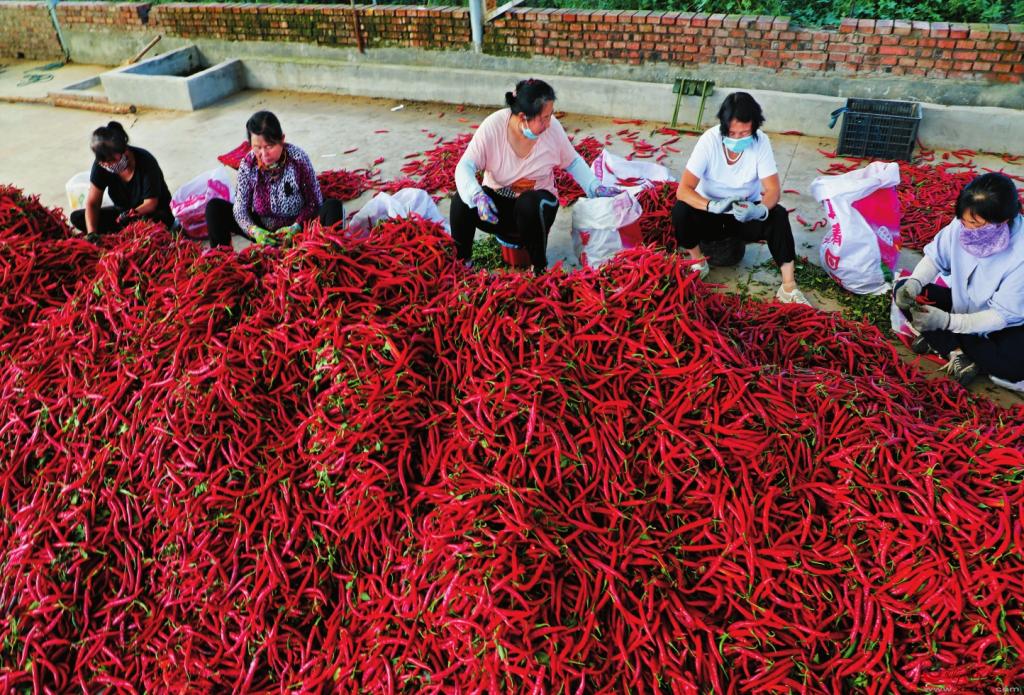 從一開始的小打小鬧,到現(xiàn)在辣椒產(chǎn)業(yè)已成為全村農(nóng)民增收的主要途徑,形成了以種植商品椒為特色的辣椒種植基地?!艾F(xiàn)在我們村辣椒種植面積在5000畝左右,村民們還在外縣、外村包地種辣椒,規(guī)模已達(dá)2萬畝左右?!备叱谴妩h支部書記、村委會主任羅前緒介紹。
