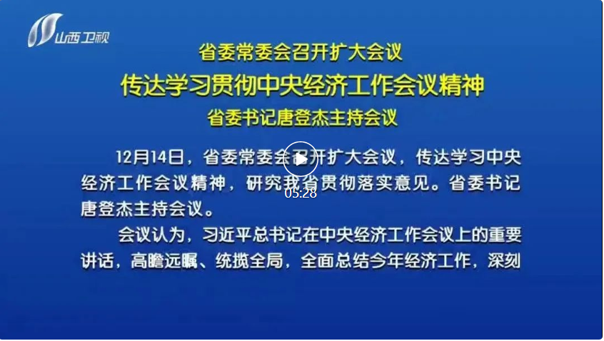 山西日報報道 12月14日,省委常委會召開擴大會議,傳達學習中央經濟工作會議精神,研究我省貫徹落實意見。省委書記唐登杰主持會議。