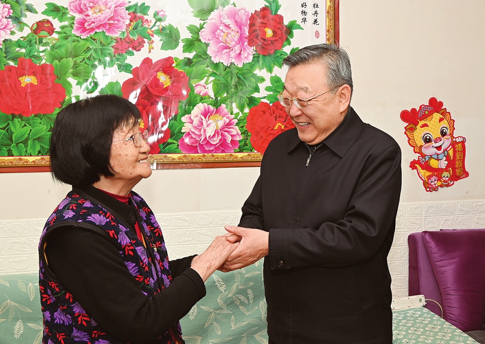 農(nóng)歷龍年春節(jié)來(lái)臨前夕,省委書記、省人大常委會(huì)主任唐登杰在太原市看望慰問(wèn)老黨員、軍烈屬和困難職工,代表省委、省政府向全省廣大黨員干部群眾送上誠(chéng)摯問(wèn)候和新春祝福。山西日?qǐng)?bào)記者史曉波攝