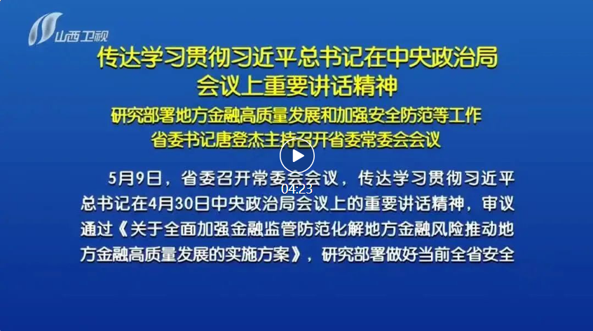 山西日報報道 5月9日,省委召開常委會會議,傳達(dá)學(xué)習(xí)貫徹習(xí)近平總書記在4月30日中央政治局會議上的重要講話精神,審議通過《關(guān)于全面加強(qiáng)金融監(jiān)管防范化解地方金融風(fēng)險推動地方金融高質(zhì)量發(fā)展的實(shí)施方案》,研究部署做好當(dāng)前全省安全防范工作。省委書記唐登杰主持會議。