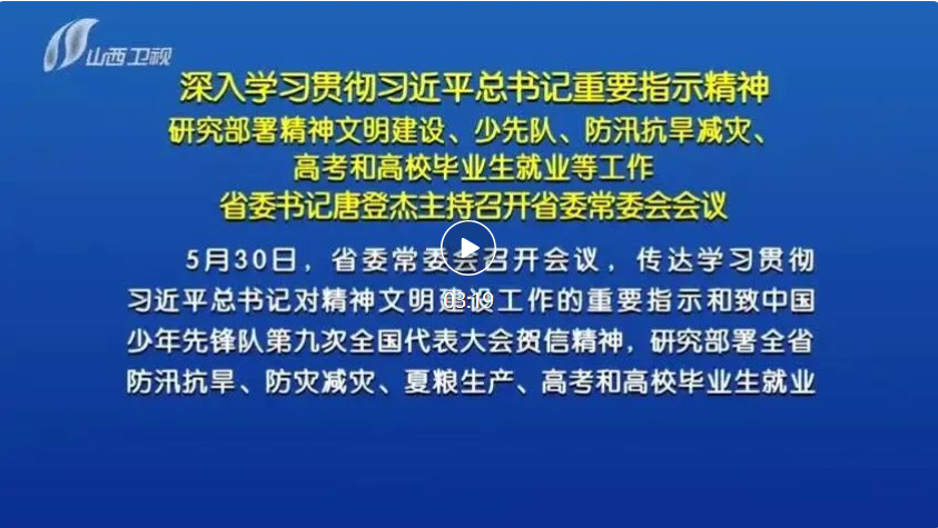 5月30日,省委常委會召開會議,傳達(dá)學(xué)習(xí)貫徹習(xí)近平總書記對精神文明建設(shè)工作的重要指示和致中國少年先鋒隊(duì)第九次全國代表大會賀信精神,研究部署全省防汛抗旱、防災(zāi)減災(zāi)、夏糧生產(chǎn)、高考和高校畢業(yè)生就業(yè)等工作。省委書記唐登杰主持會議。