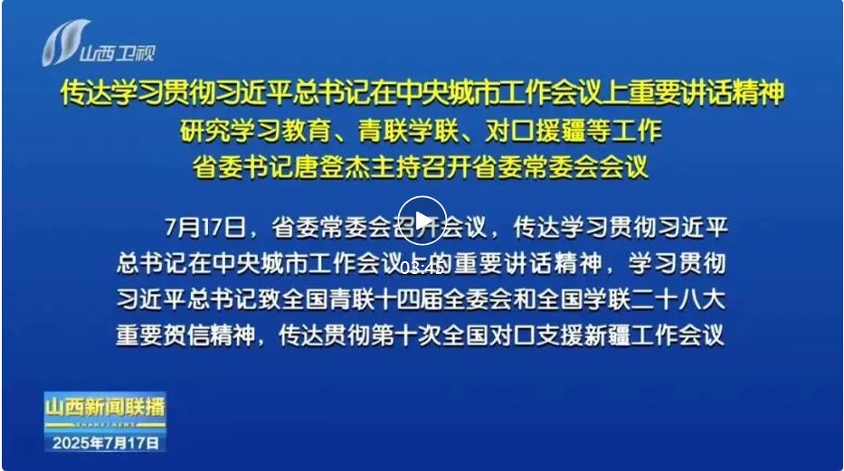 會議指出,要認真落實第十次全國對口支援新疆工作會議精神,扛牢政治責任,完善工作機制,科學編制“十五五”援疆規(guī)劃,扎實推進產(chǎn)業(yè)援疆、教育援疆、醫(yī)療援疆、文化潤疆和民族交往交流交融等重點任務(wù),為服務(wù)新疆社會穩(wěn)定和長治久安作出山西貢獻。