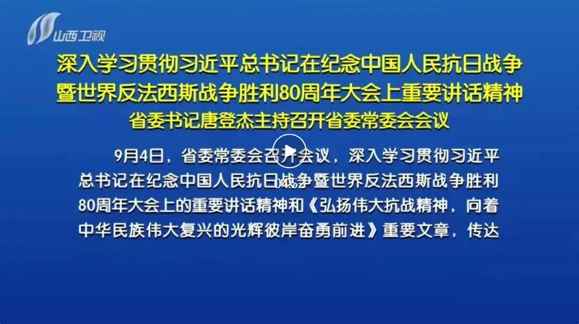 會議指出,習(xí)近平總書記在紀(jì)念中國人民抗日戰(zhàn)爭暨世界反法西斯戰(zhàn)爭勝利80周年大會上的重要講話,全面回顧了中國人民抗日戰(zhàn)爭的偉大歷程,深刻闡釋了抗戰(zhàn)勝利的重大意義,再次宣示了中國人民“銘記歷史、緬懷先烈、珍愛和平、開創(chuàng)未來”的堅定立場,具有很強的政治性、思想性、戰(zhàn)略性和指導(dǎo)性,必將激揚起為實現(xiàn)中華民族偉大復(fù)興、推動構(gòu)建人類命運共同體而奮斗的磅礴偉力。全省上下要堅持以習(xí)近平新時代中國特色社會主義思想為指導(dǎo),深入學(xué)習(xí)貫徹習(xí)近平總書記重要講話精神,深刻領(lǐng)悟“兩個確立”的決定性意義,堅決做到“兩個維護”,堅定不移走中國特色社會主義道路,傳承和弘揚偉大抗戰(zhàn)精神,踔厲奮發(fā)、勇毅前行,努力在推動資源型經(jīng)濟轉(zhuǎn)型發(fā)展上邁出新步伐,奮力譜寫三晉大地推進中國式現(xiàn)代化新篇章。要充分發(fā)揮我省紅色文化資源豐富的優(yōu)勢,做好抗戰(zhàn)史研究闡釋工作,更加注重用黨的優(yōu)良革命傳統(tǒng)和作風(fēng)教育人,教育引導(dǎo)全省廣大黨員干部群眾堅定歷史自信、增強歷史主動,賡續(xù)紅色血脈、激發(fā)愛國熱情,把偉大抗戰(zhàn)精神一代代傳下去。要進一步增強牢記囑托、感恩奮進、頑強拼搏、真抓實干的斗志,堅定扛牢國家資源型經(jīng)濟轉(zhuǎn)型綜改試驗區(qū)建設(shè)、深化能源革命、打造內(nèi)陸地區(qū)對外開放新高地、促進中部地區(qū)加快崛起、推動黃河流域生態(tài)保護和高質(zhì)量發(fā)展等重大使命任務(wù),扎實推動高質(zhì)量發(fā)展,不斷深化全方位轉(zhuǎn)型,統(tǒng)籌好發(fā)展和安全,努力完成全年經(jīng)濟社會發(fā)展目標(biāo)任務(wù),確保“十四五”順利收官、“十五五”良好開局。要堅持黨的全面領(lǐng)導(dǎo),堅定扛牢管黨治黨政治責(zé)任,不斷提高各級黨組織的政治領(lǐng)導(dǎo)力、思想引領(lǐng)力、群眾組織力、社會號召力,以永遠在路上的堅韌和執(zhí)著推進全面從嚴治黨,有力引領(lǐng)保障全省高質(zhì)量發(fā)展和現(xiàn)代化建設(shè)。