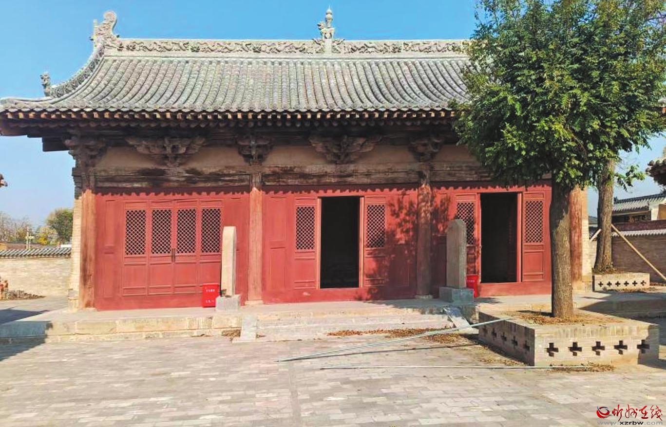 七峰寺位于忻府區(qū)董村鎮(zhèn)孫村村北,坐北向南。創(chuàng)建年代不詳,現(xiàn)存一進(jìn)院布局,中軸線上建筑依次為山門、過殿、大雄寶殿、東西配殿及東西側(cè)耳殿。除大雄寶殿為明代遺構(gòu)外,其余建筑均為清代遺構(gòu)。大雄寶殿面闊三間,進(jìn)深四椽,單檐懸山頂,五檁無廊式構(gòu)架,斗栱五踩雙昂,平身科施45°斜栱。過殿面闊三間,進(jìn)深四椽,單檐懸山頂。東西配殿形制同過殿。東西側(cè)耳殿均為單體建筑,單檐懸山頂。