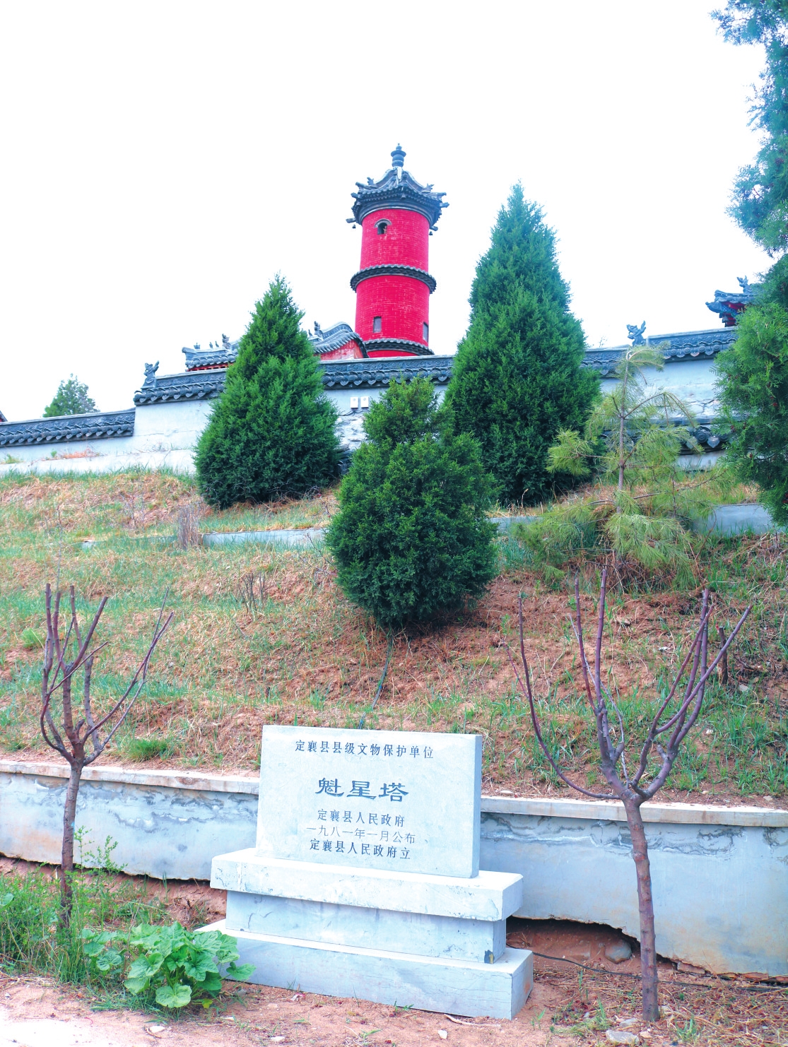 魁星塔位于定襄縣神山鄉(xiāng)神山村東約150米處,為圓形三層實心磚塔。塔基平面呈圓形,石砌而成,高0.52米,直徑2.7米,占地面積5.7平方米。據(jù)塔碣記載,該塔建于清乾隆二十三年(1758),光緒二十一年(1895)維修。塔身為三層圓形結(jié)構(gòu),通高約11米,通體素面,每層設(shè)磚砌花牙塔檐,上露筒瓦,三層南側(cè)辟壺門。一層南側(cè)、東側(cè)各嵌塔碣1方。六角攢尖頂,上置剎座露盤、寶珠塔剎。受自然酸雨侵蝕和年久失修等因素影響,塔頂部有所受損。1981年,被公布為縣級文物保護單位。2012年社會集資維修了魁星塔,現(xiàn)保存完好。2022年5月,被公布為市級文物保護單位。