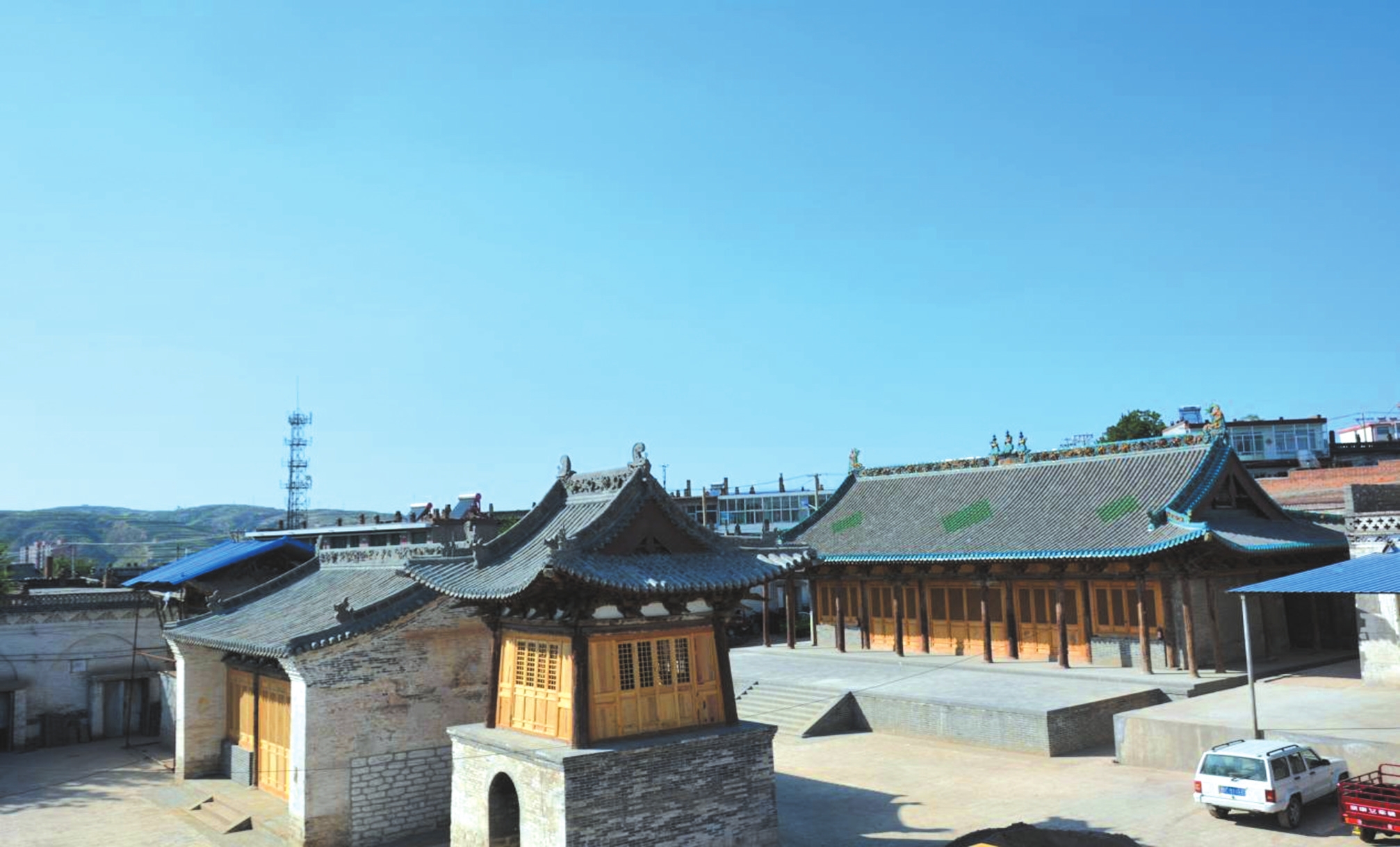 隆崗寺位于偏關(guān)縣新關(guān)鎮(zhèn)城內(nèi)隆崗街,又稱(chēng)南寺廟。該廟坐北朝南,南北長(zhǎng)38米、東西寬26米,占地面積988平方米,建筑面積454平方米。寺廟始建于唐代,明清時(shí)曾重修,中軸線現(xiàn)存天王殿、正殿,兩側(cè)為鐘樓、鼓樓。正殿建于高1.2米的石砌臺(tái)基上,面寬五間,進(jìn)深六椽,四周?chē)?,單檐歇山頂,綠琉璃瓦剪邊,七檁前后廊式構(gòu)架,斗拱三踩單昂,平身科每間一攢,門(mén)窗已被后人改動(dòng)。