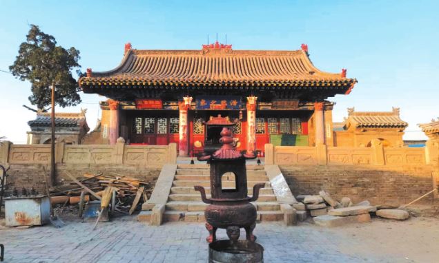 東關(guān)關(guān)帝廟位于原平市崞陽(yáng)鎮(zhèn)東關(guān)村,距崞陽(yáng)城東門(mén)外約100米。始建年代不詳,據(jù)正殿梁架題記載,清咸豐三年(1953)重修,現(xiàn)存建筑為清代遺構(gòu)。東西長(zhǎng)25.5米,南北寬87米,占地面積2218平方米。坐北朝南,二進(jìn)院落布局,中軸線建有影壁、大門(mén)、正殿和圣母殿,兩側(cè)為東西配殿。正殿磚砌臺(tái)基,前設(shè)月臺(tái),其上三面設(shè)勾欄、望柱,欄上雕有各種花卉、如意及禽獸。殿身面寬三間,進(jìn)深六椽,單檐懸山頂。七檁前后廊式構(gòu)架,斗拱五踩重翹,平身科每間一攢,出45度斜拱,前檐各間均設(shè)四扇六抹萬(wàn)字紋格扇門(mén),殿內(nèi)新塑像3尊。圣母殿磚砌臺(tái)基,殿身面寬三間,進(jìn)深三椽,單檐硬山頂,四檁前廊式構(gòu)架。明間四扇六抹萬(wàn)字紋格扇門(mén),次間為格扇窗。殿內(nèi)新塑像3尊。廟內(nèi)存清代重修關(guān)帝廟碑3通,殘碑1通,石獅2對(duì)。1981年列為原平市(縣級(jí))文物保護(hù)單位。2022年列為第三批市級(jí)文物保護(hù)單位。