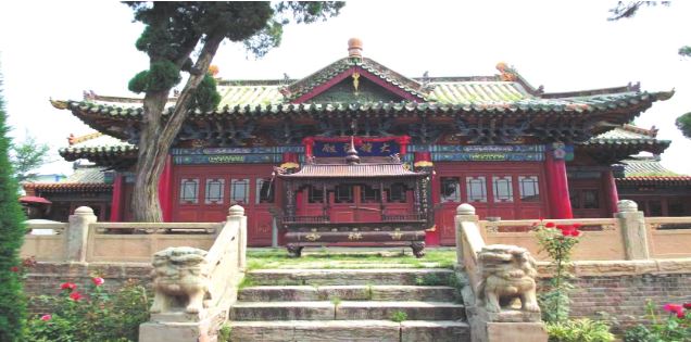 泰山廟位于原平市崞陽(yáng)鎮(zhèn)平定街村。據(jù)清《崞縣志》記載,創(chuàng)建于元至治三年(1323)。明、清均有修葺。坐北朝南,東西長(zhǎng)31.8米,南北寬52.3米,占地面積約1663平方米。中軸線僅存正殿,兩側(cè)為東西配殿及耳房。正殿及東西配殿為明代遺構(gòu),余為清代遺存。正殿石砌臺(tái)基,前設(shè)月臺(tái),上置勾欄、望柱,面寬五間,進(jìn)深五椽,單檐懸山頂,六檁前廊式構(gòu)架,斗拱五踩,單翹單昂,裝修原制不存。正殿前建有抱廈三間,單檐歇山頂。現(xiàn)新塑像23尊。