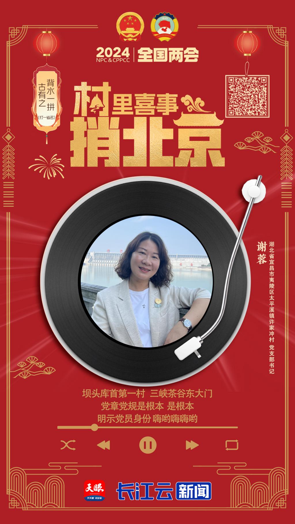 湖北省宜昌市夷陵區(qū)太平溪鎮(zhèn)許家沖村黨支部書記謝蓉三峽工程的第一批壩區(qū)移民。搬遷后,她創(chuàng)立了“三峽·艾”特色品牌,將峽江繡藝“牽花繡”傳承下來并發(fā)揚光大,帶領(lǐng)了大批賦閑在家的婦女靈活就業(yè)
