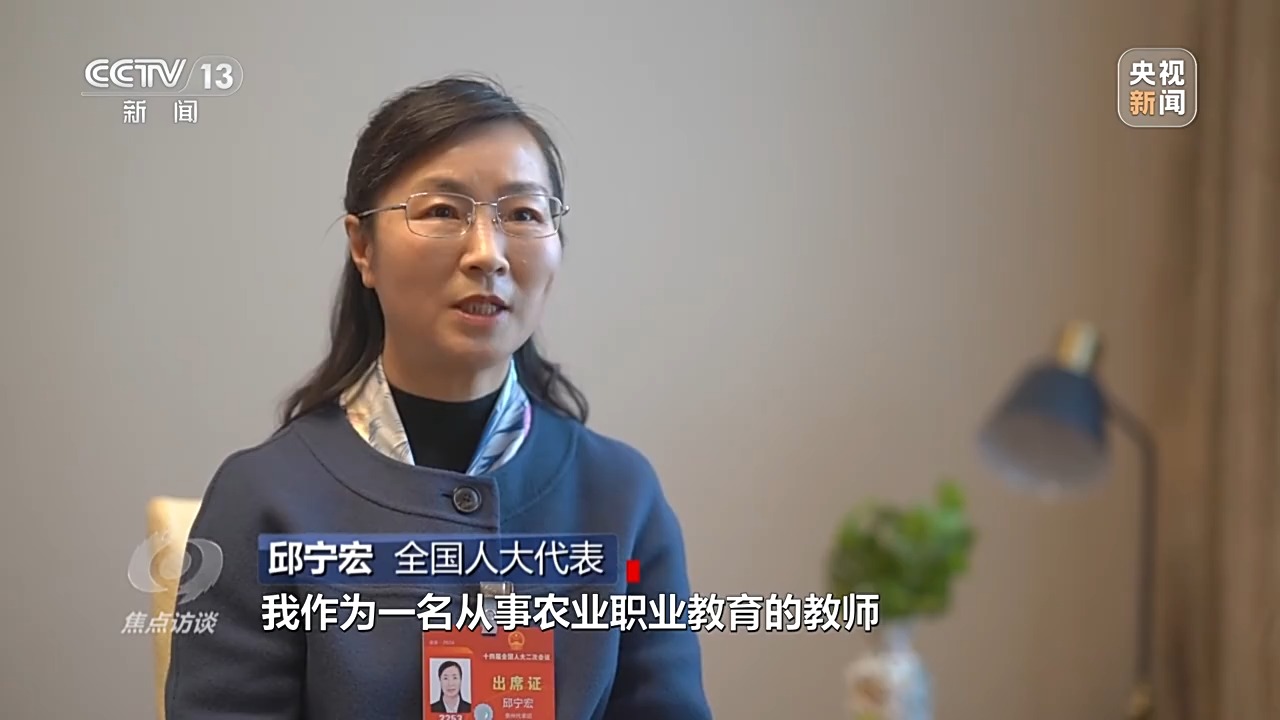 全國人大代表 邱寧宏:要實現(xiàn)高質(zhì)量發(fā)展,離不開人才隊伍的建設(shè)。我作為一名從事農(nóng)業(yè)職業(yè)教育的教師,要立足崗位,為鄉(xiāng)村振興培養(yǎng)懂農(nóng)業(yè)、愛農(nóng)村、愛農(nóng)民的技術(shù)技能人才。