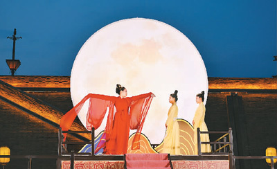 忻州古城北廣場(chǎng)的舞臺(tái)劇《貂蟬拜月》。王笑宇攝
