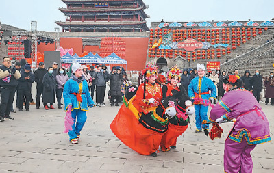 忻州古城南城門前的快閃表演。石薦文攝