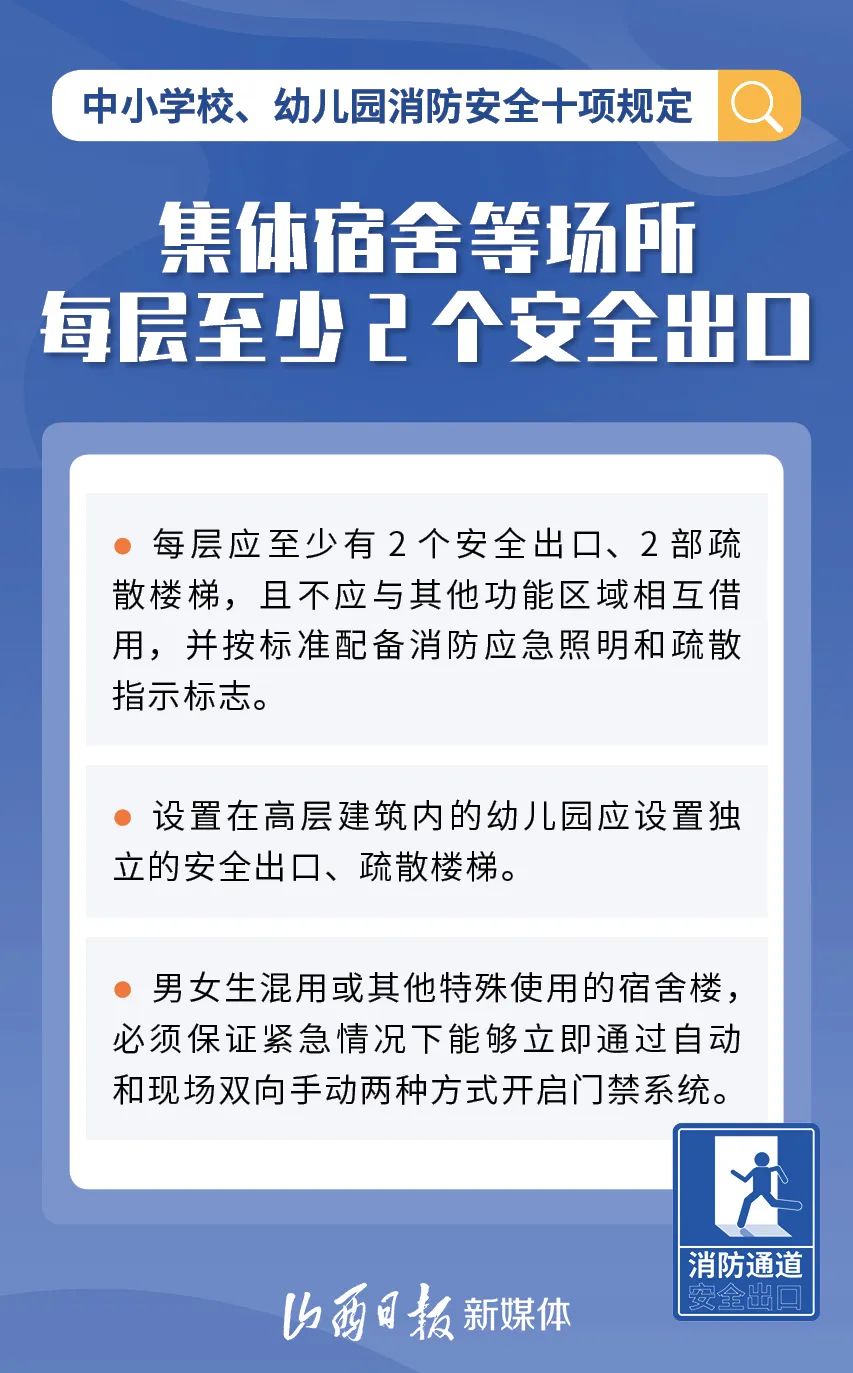 為加強(qiáng)中小學(xué)校、幼兒園消防安全管理,近日,教育部、國家消防救援局研究制定了《中小學(xué)校、幼兒園消防安全十項(xiàng)規(guī)定》,具體規(guī)定內(nèi)容如下。