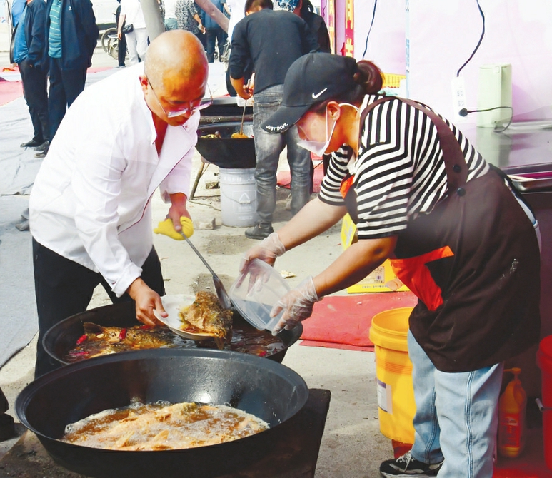首屆熬魚(yú)美食節(jié)匯聚了代縣碗托、老咸菜、豆腐干等當(dāng)?shù)亍凹亦l(xiāng)味”,12家熬魚(yú)商戶更是集體亮相,現(xiàn)場(chǎng)烹飪銷售。賈狗狗有著近40年的熬魚(yú)經(jīng)驗(yàn),今年備貨比往年更足、更早。