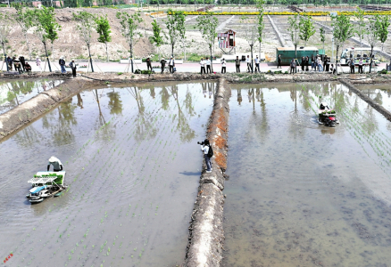 5月28日,太原市晉源區(qū)晉祠水稻插秧節(jié)在稻田公園舉行?;顒?dòng)現(xiàn)場,機(jī)器轟鳴、水波蕩漾,自動(dòng)化插秧機(jī)勻速前進(jìn),水田里留下一簇簇新綠。卷褲腳、戴草帽、踏稻田、插秧苗、踩泥巴、捉魚蝦……一群群研學(xué)的孩子分批下田,感受手工插秧的樂趣,細(xì)嗅農(nóng)耕勞作的氣息。田埂上圍觀群眾的加油聲、喝彩聲不絕于耳,現(xiàn)場一片熱火朝天。