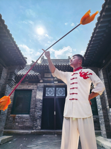 “風(fēng)火流星”是集山西民間雜技與武術(shù)精髓于一體的社火表演藝術(shù),2008年入選國家級非物質(zhì)文化遺產(chǎn)代表性項目名錄。它以繩索系鐵籠,內(nèi)置燃燒木炭,表演者通過手、肩、腰等部位的協(xié)調(diào)發(fā)力,讓鐵籠高速旋轉(zhuǎn),呈現(xiàn)出“風(fēng)助火勢、火借風(fēng)威”的視覺效果。