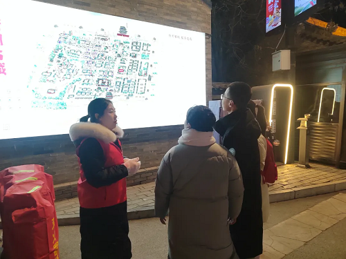在涌動的人流中,一抹“志愿紅”格外醒目。在古城的各個(gè)區(qū)域,法院干警身著統(tǒng)一的服裝,熱情地為游客拍照、打卡、掃碼,宣傳介紹古城的旅游景點(diǎn),還為游客提供路線指引、問題解答、失物協(xié)尋等幫助,古城內(nèi)隨處可見他們忙碌的身影。