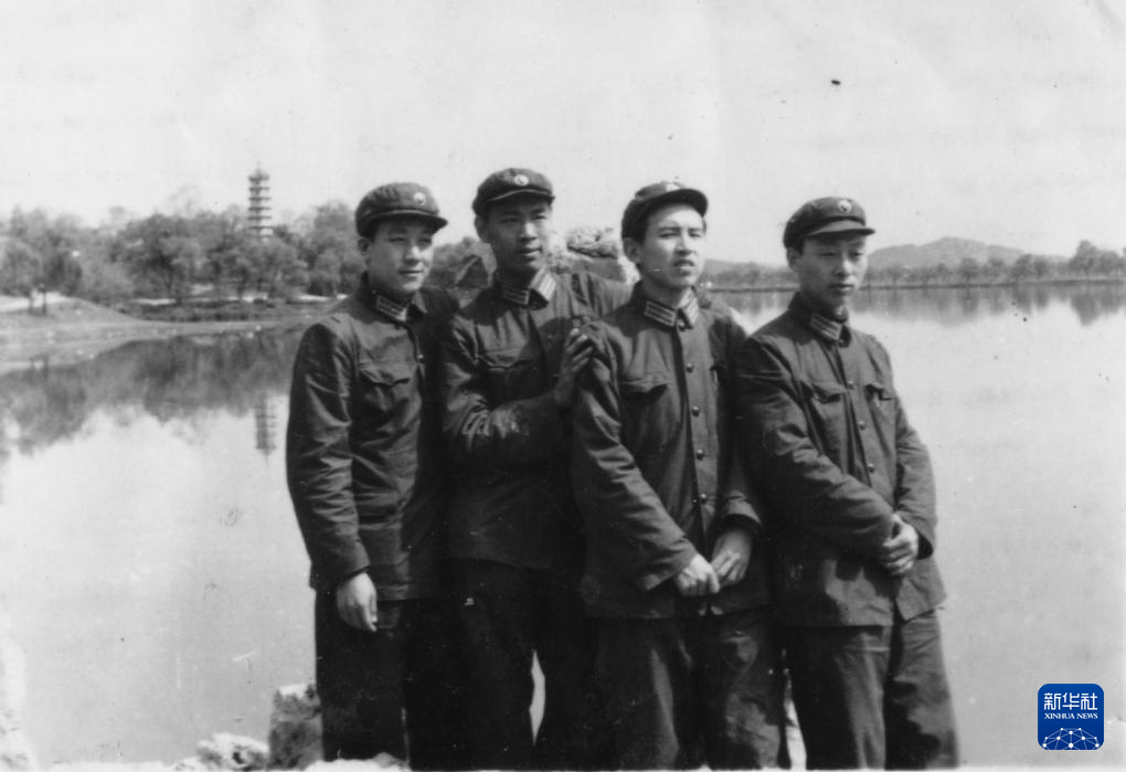 1962年,王小謨(左二)參軍分配后和戰(zhàn)友合影(資料照片)。新華社發(fā)(中國電子科技集團有限公司電子科學(xué)研究院供圖)