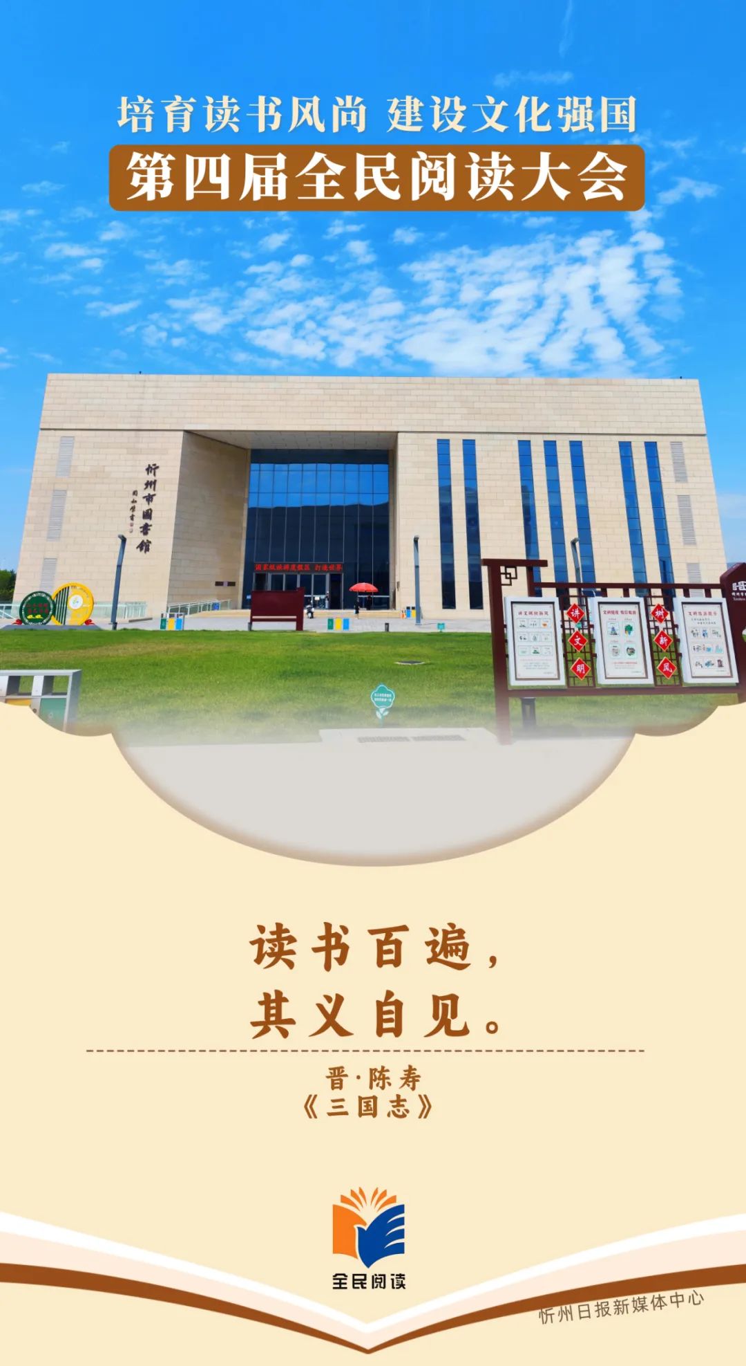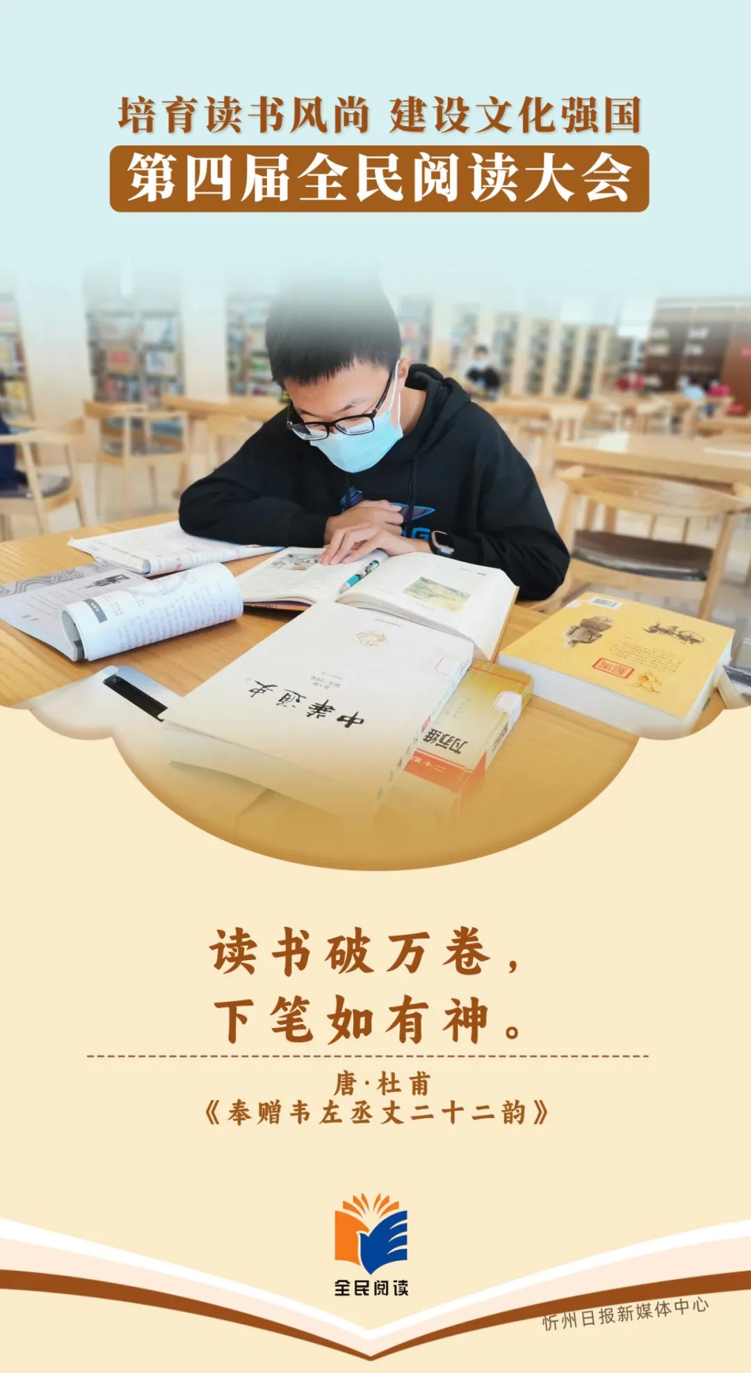 第四屆全民閱讀大會將于4月23日至25日在太原市舉辦。大會由中共中央宣傳部、中共山西省委、山西省人民政府主辦,以“培育讀書風尚 建設文化強國”為主題,旨在通過全民閱讀構筑共有精神家園,提升社會文明程度,為以中國式現(xiàn)代化全面推進強國建設、民族復興偉業(yè)提供文化滋養(yǎng)和精神力量。