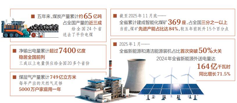 我省堅(jiān)持新能源與傳統(tǒng)能源協(xié)同,加快建設(shè)煤炭綠色開(kāi)發(fā)利用基地、電力外送基地、非常規(guī)天然氣基地,能源供應(yīng)韌性大幅增強(qiáng),能源安全保障能力持續(xù)提高。